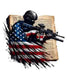 "Last Line" showcases a trio of armed reaper soldiers standing resolutely, united in their mission. Behind them, the U.S. flag waves proudly, symbolizing their unwavering commitment to defend the nation and its ideals.