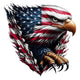 This eagle stands tall, feathers glowing with the colors of the flag, symbolizing victory in the face of adversity. Its powerful wings, edged in stars and stripes, embody the triumph of freedom.