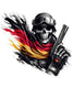 A German soldier, draped in the national flag, stands tall, his face concealed by a grim reaper mask. This haunting image symbolizes the nation's unwavering spirit and the sacrifices made by its soldiers, a reminder of the heavy toll of war.