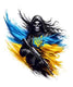 A resolute patriot, their eyes obscured through the mask, stands defiantly. Wrapped in the folds of the Ukrainian flag, they gaze upon their enemies. Looking at the danger ahead, he prepares himself one last time before going into the fray.