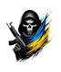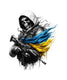 A resolute patriot, their eyes obscured through the mask, stands defiantly. Wrapped in the folds of the Ukrainian flag, they gaze upon their enemies. Looking at the danger ahead, he prepares himself one last time before going into the fray.
