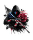 "Destined Black Heart" features a Grim Reaper soldier. His origin draped in the backdrop however, obscured by his outstretched midnight wings. Taking up arms, he follows his destiny into the darkness.