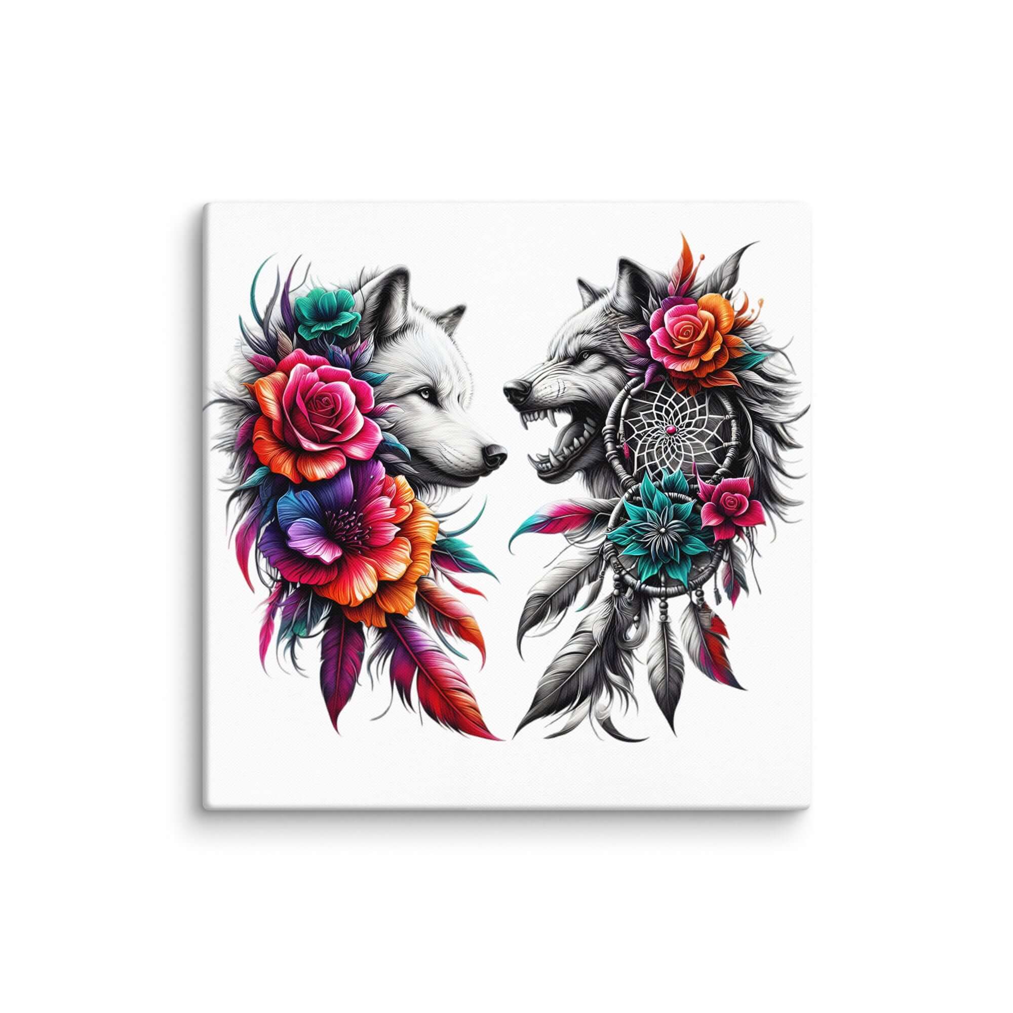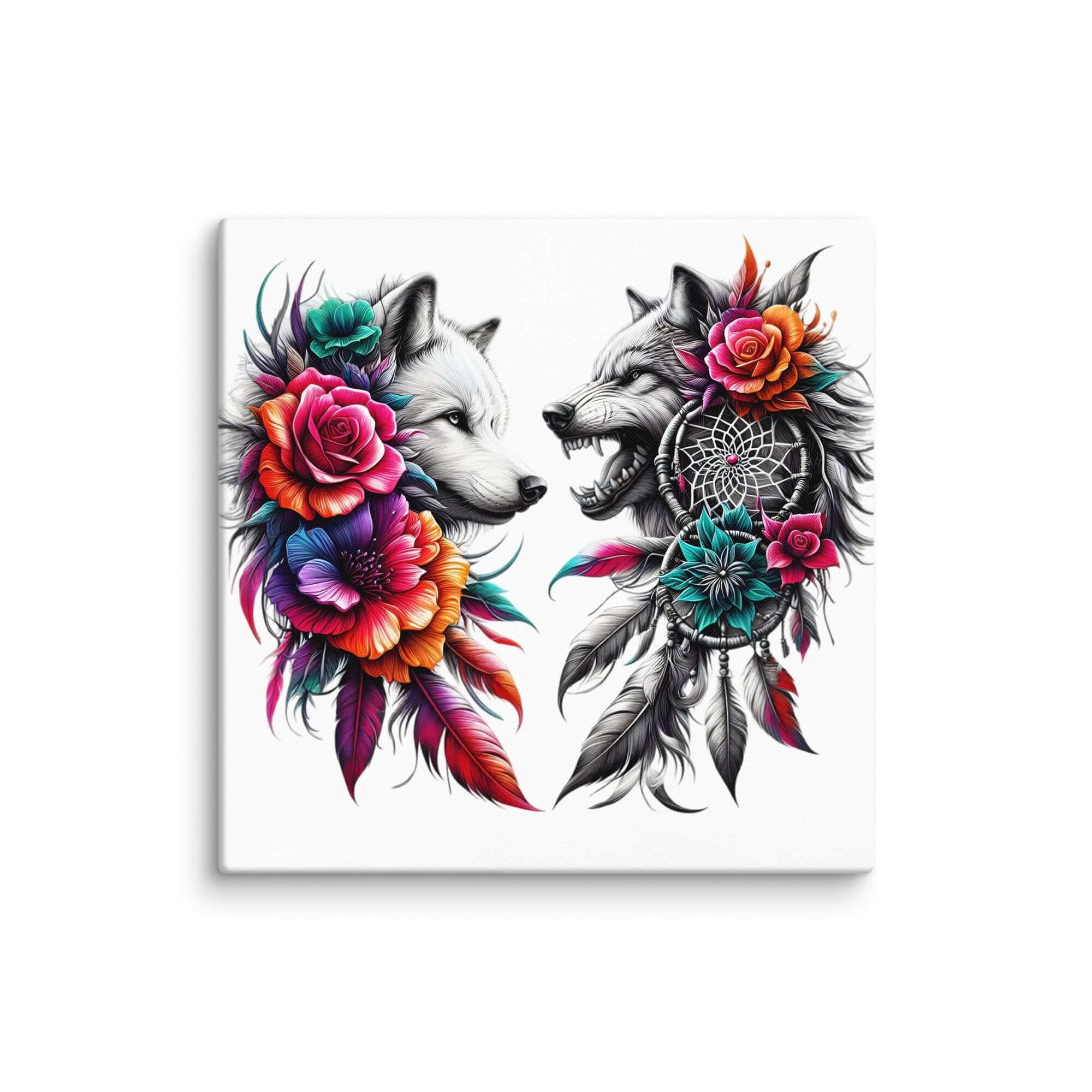 DREAMCATCHER WOLF - FLORAL Canvas Prints - Unframed Wall Art Decor