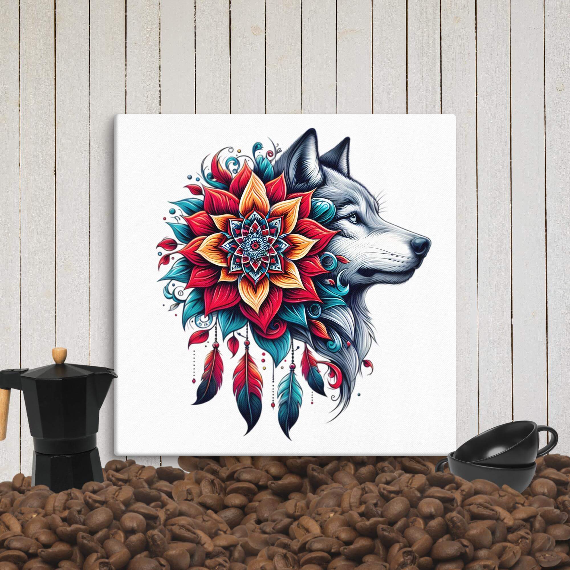 DREAMCATCHER WOLF - FLORAL Canvas Prints - Unframed Wall Art Decor