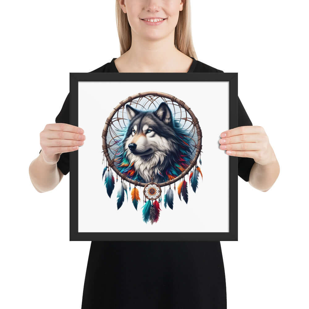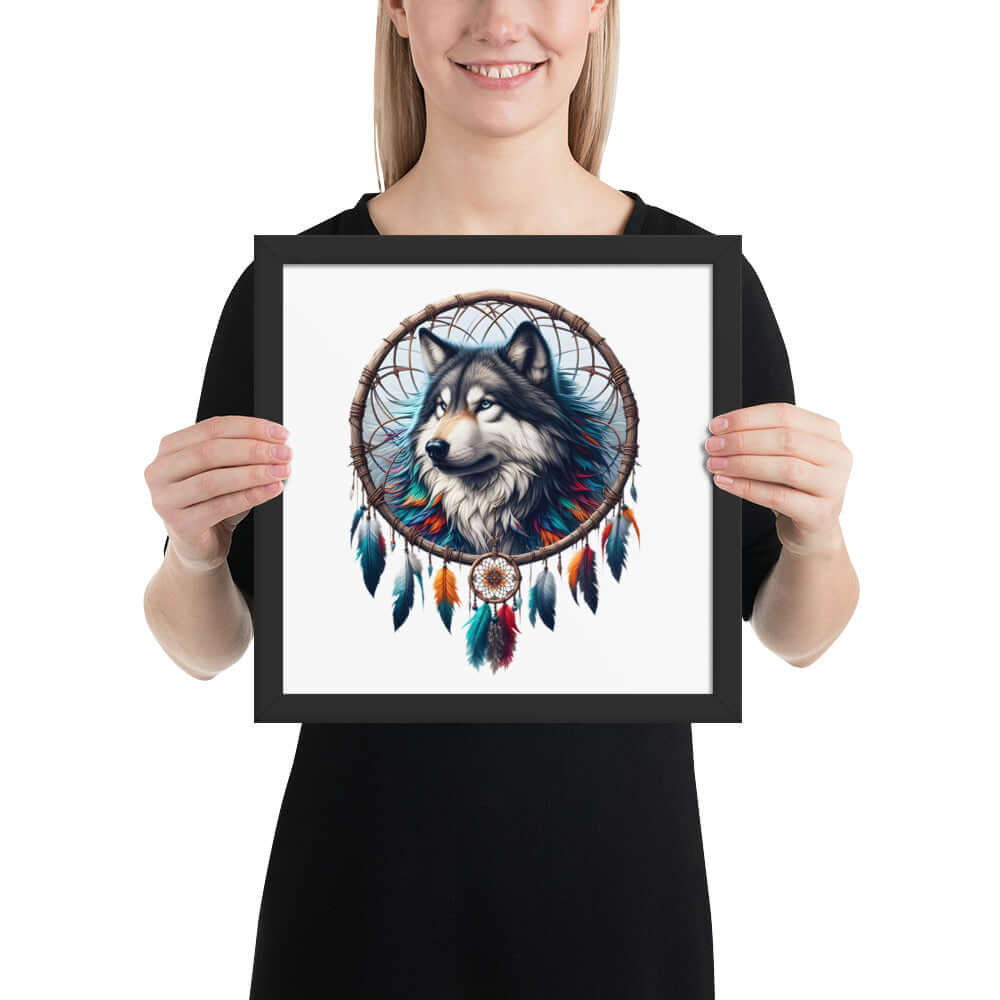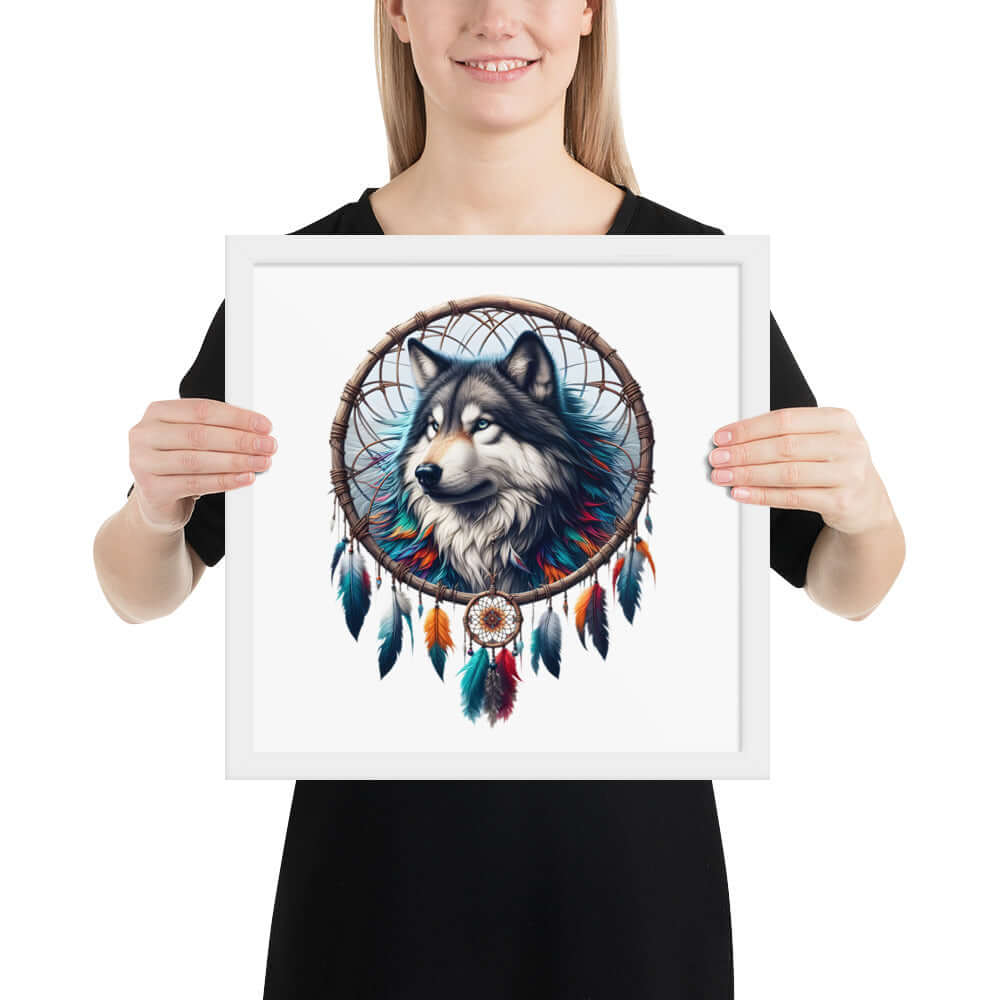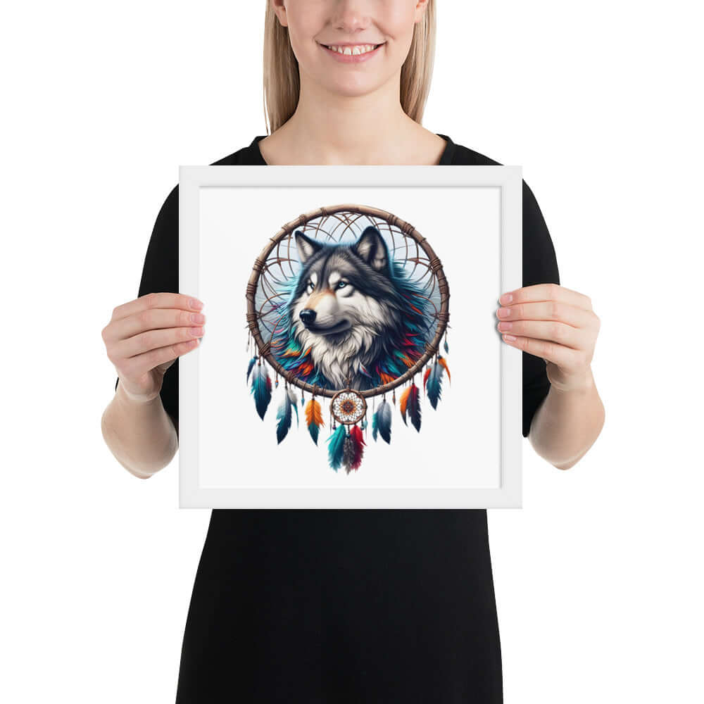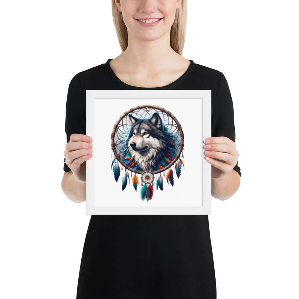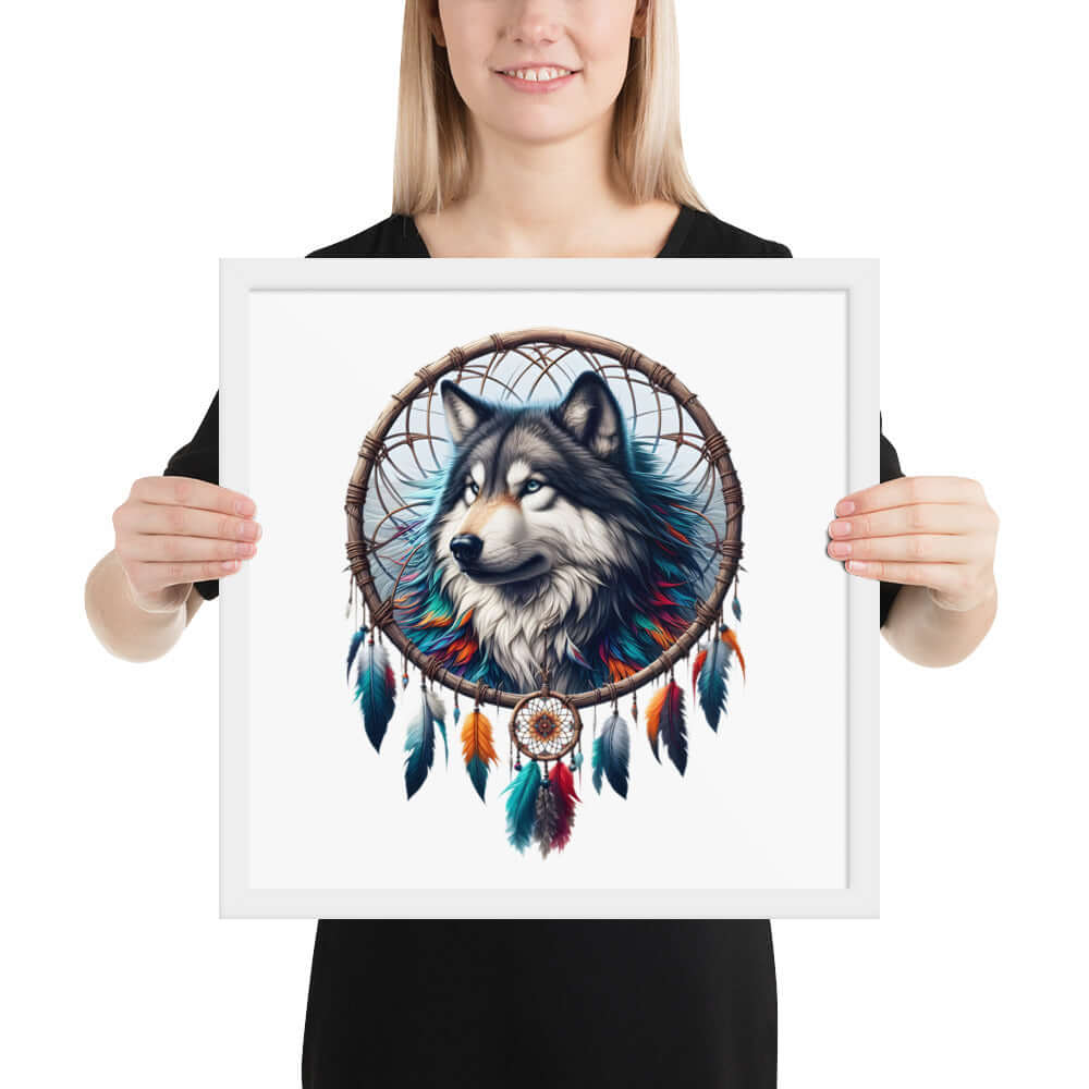 Embark on a journey through the enchantment of this mesmerizing artwork, where a majestic wolf is intertwined with the delicate beauty of a dreamcatcher. Whether left in its original state or tailored to reflect your personal touch, it serves as a heartfelt homage to treasured memories and beloved individuals. Symbolic of resilience, strength, and our profound connection with nature, it beckons you to infuse your own interpretation and significance. Whether captivated by the wolf's noble spirit or the intricate allure of the dreamcatcher, allow it to become a reflection of your unique essence.