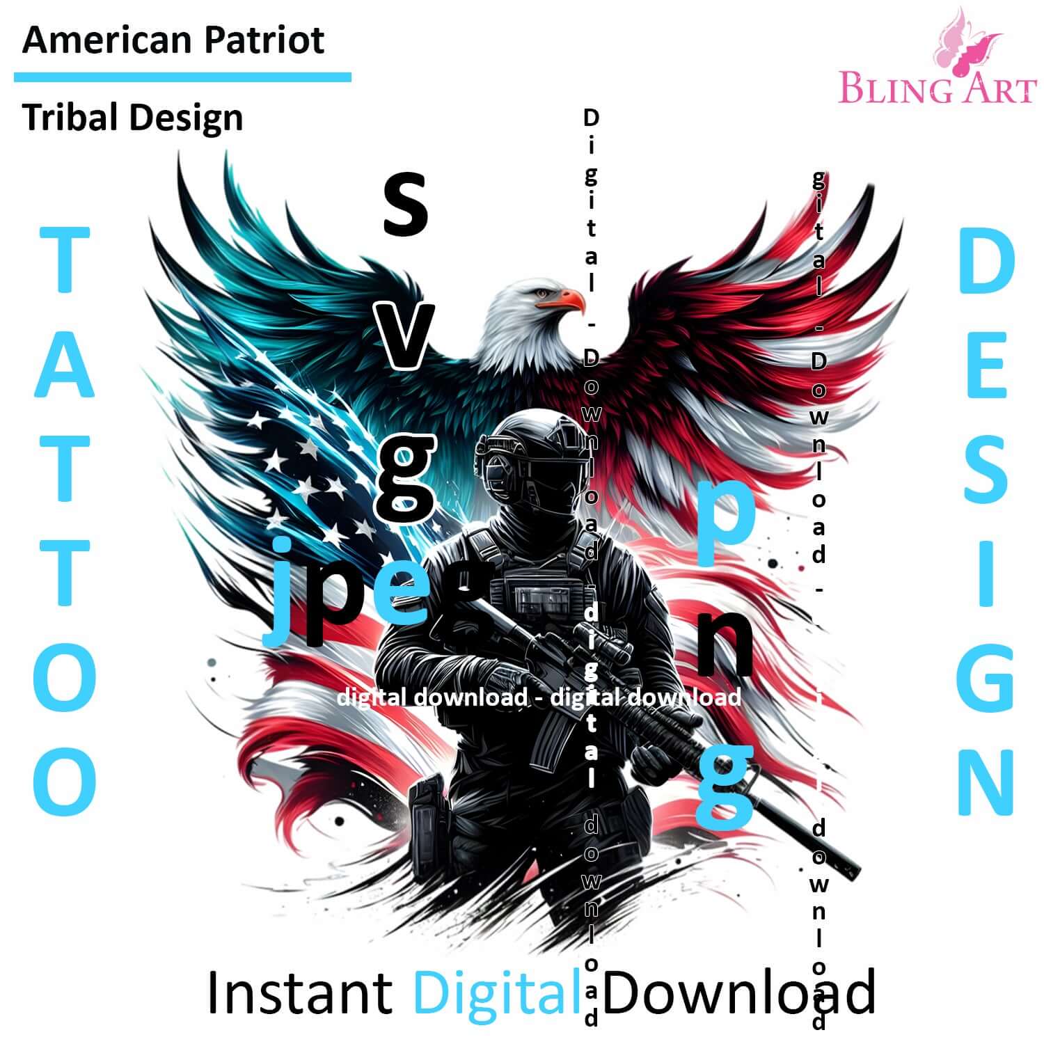 Bling Art Tribal Tattoo Instant Digital Download - American Patriot Soldier - Eagle Pride 1