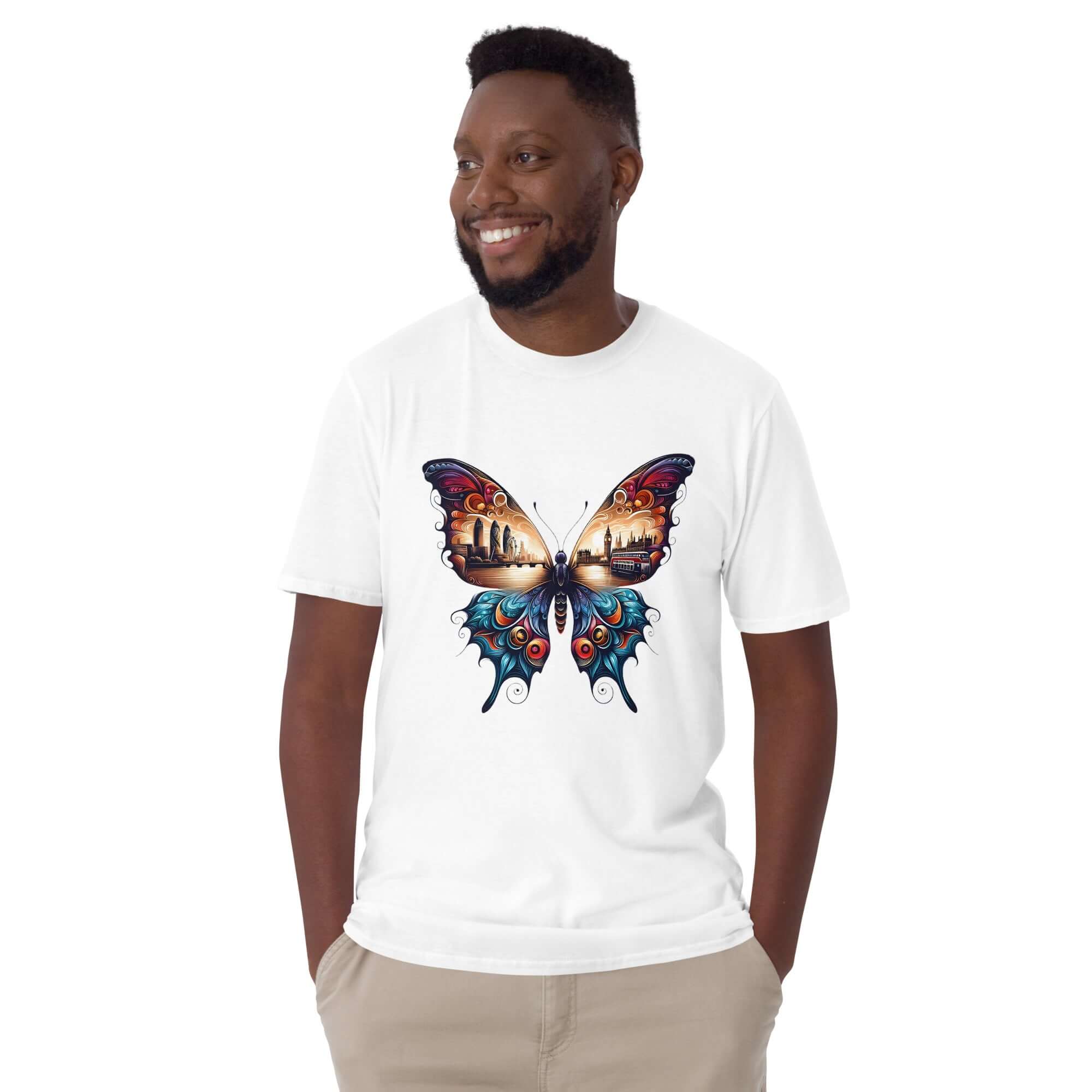 London Butterfly - Cityscape Art Apparel Short-Sleeve Unisex T-Shirt