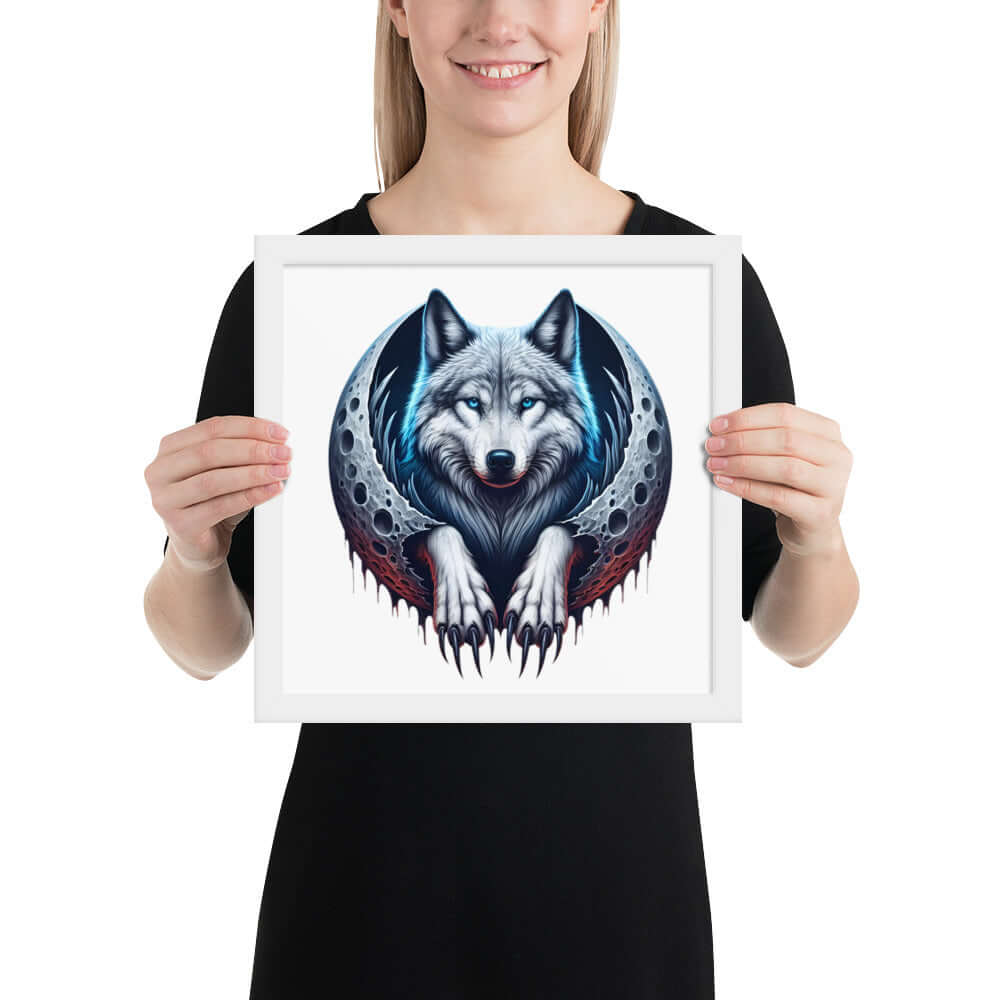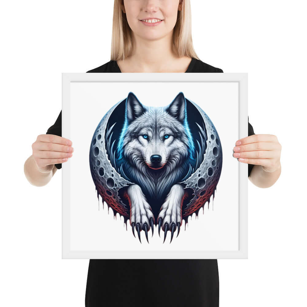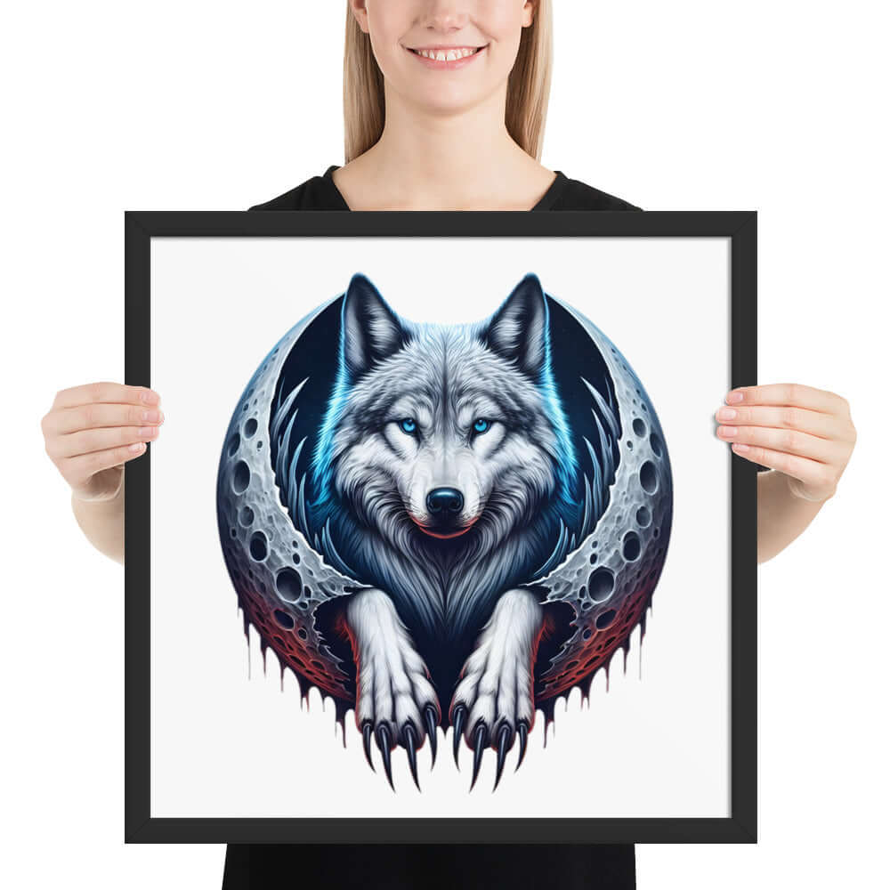 Moon Wolf Framed Poster: Digital Design for Home Decor and Wall Art