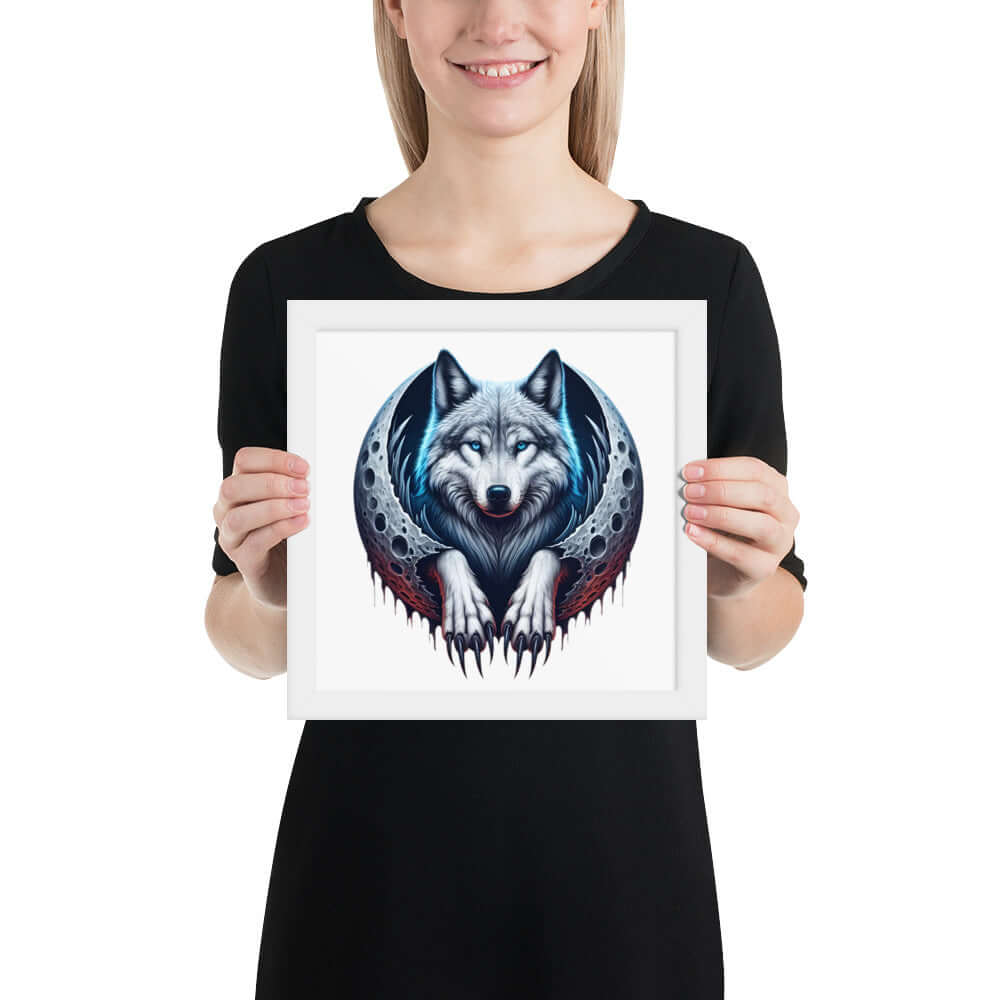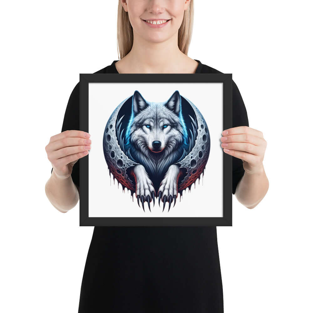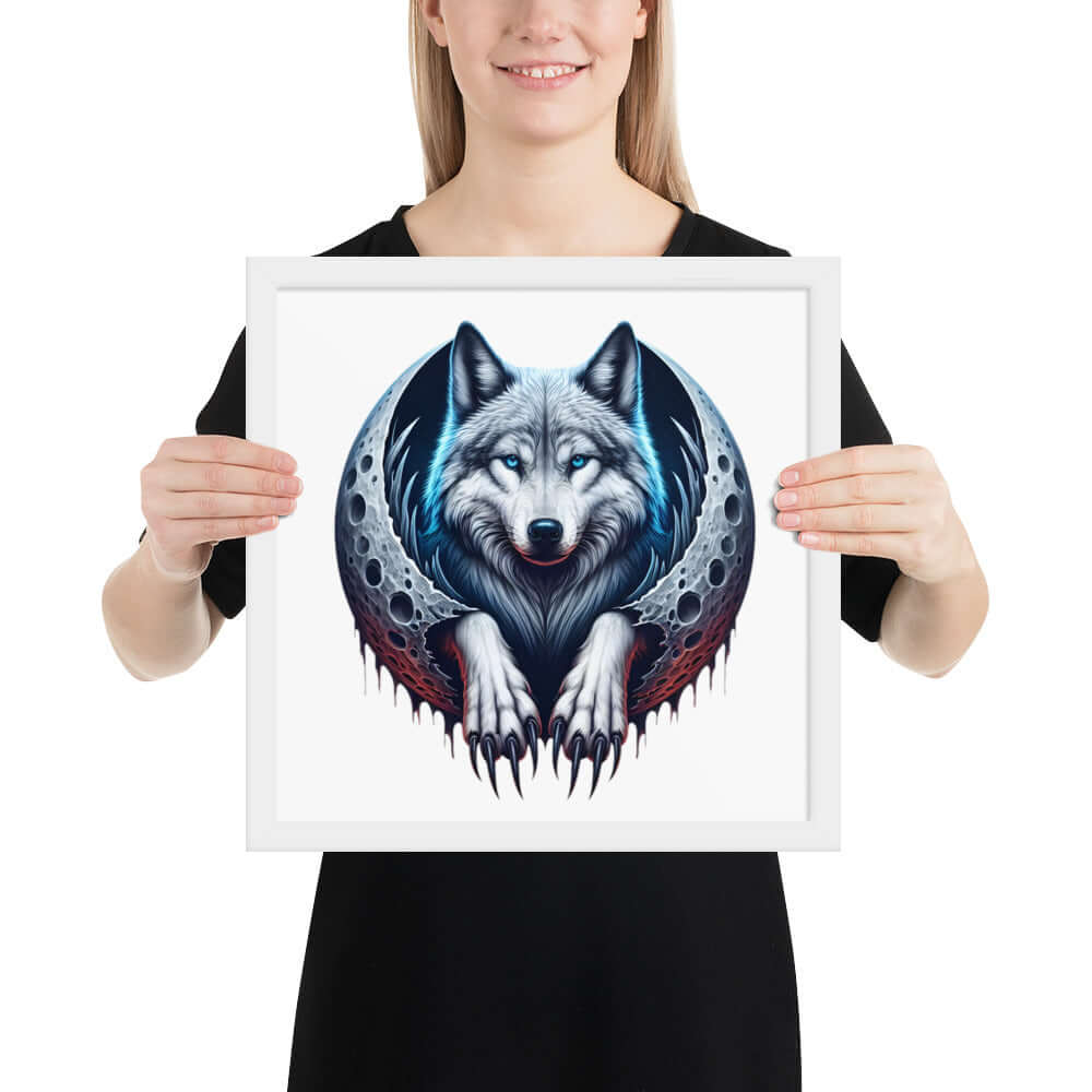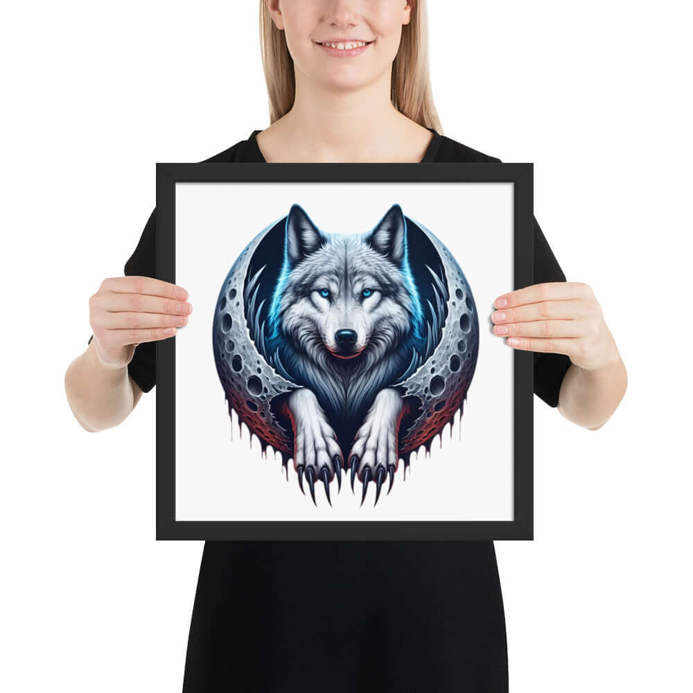Moon Wolf Framed Poster: Digital Design for Home Decor and Wall Art